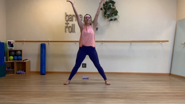 This class is dynamic with plenty of weightwork while pulsing in sumo squats and second position. We move to the floor for diamond and inner thigh work and finish up lying flat on the roller for deep abdominal work.